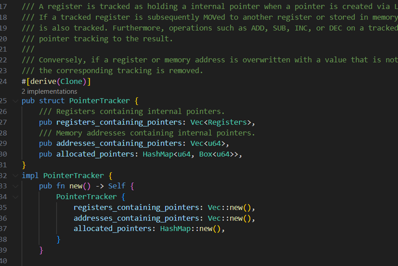 Here’s a set of pinstruction and how the pointer tracker is updated for each of them.